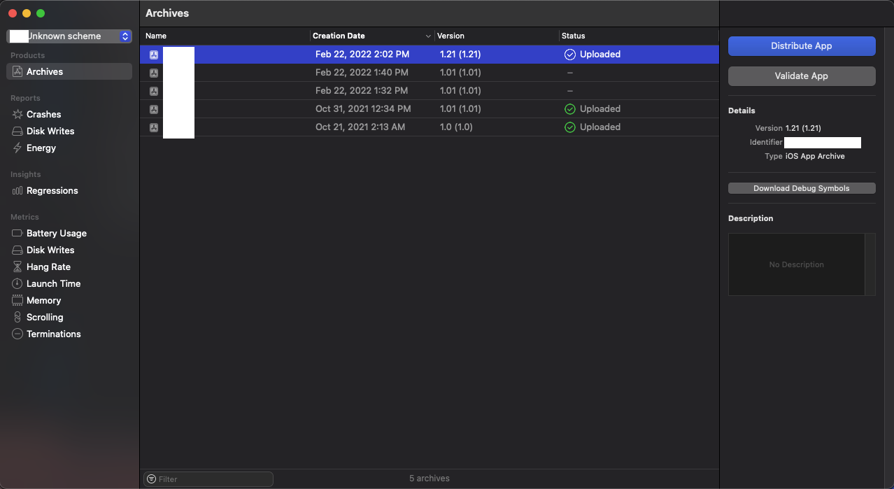 6. Xcode Archive > unknown scheme 선택 버전 선택