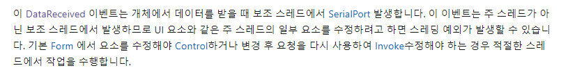 참고: SerialPort.DataReceived 이벤트 (System.IO.Ports) | Microsoft Docs